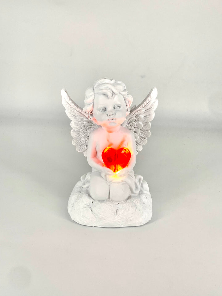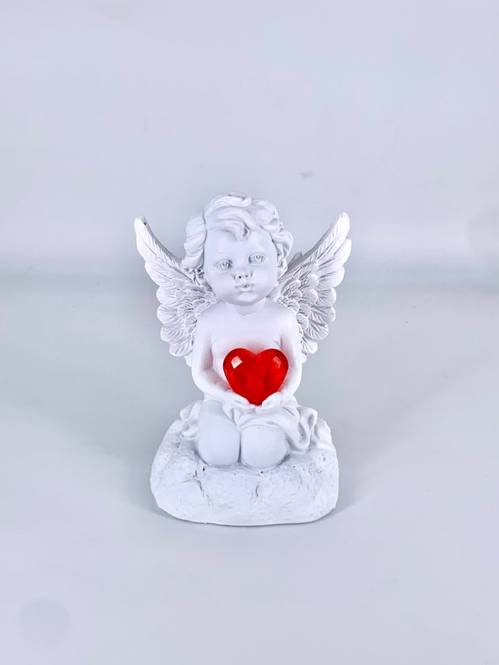 Encante-se com a delicadeza e serenidade do nosso anjo que traz nas suas mãos um coração iluminado, símbolo de amor, proteção e luz