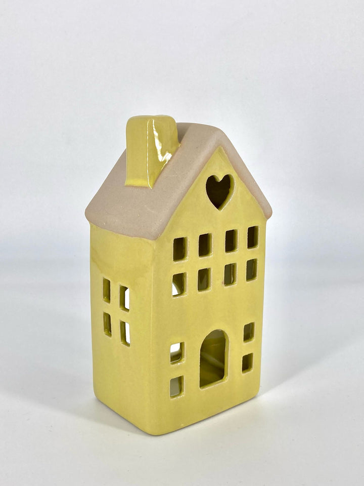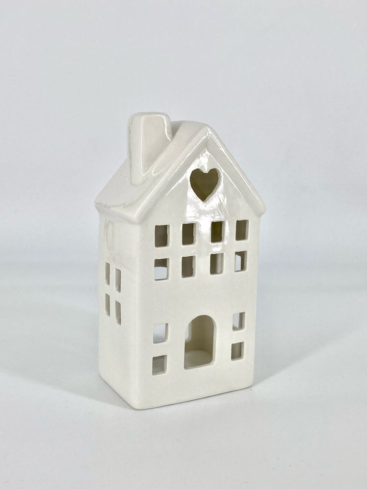 Esta charmosa casa porta-vela em cerâmica, cria um ambiente acolhedor e encantador. Com recortes delicados que deixam a luz brilhar suavemente, é ideal para usar com velas tealight ou a pilhas. Perfeita para qualquer espaço, traz um toque de conforto e elegância à sua decoração.