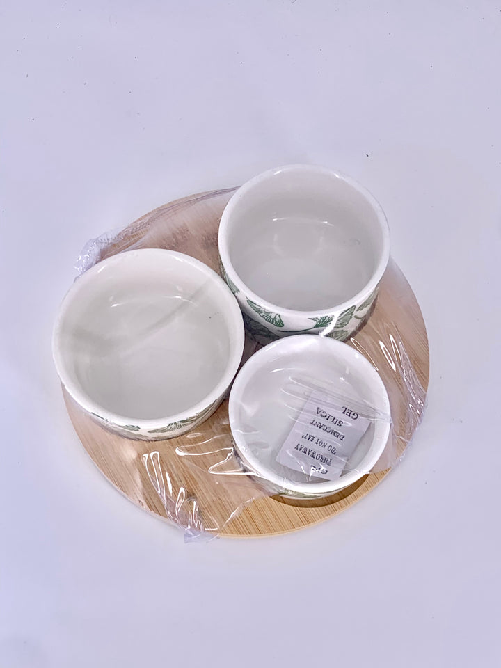 Transforme seus momentos à mesa com este elegante conjunto de 3 taças para aperitivos, acomodadas em uma charmosa base de bambu natural. Ideal para servir castanhas, molhos, patês, azeitonas ou pequenas porções com muito estilo. A combinação da cerâmica com o bambu traz um toque moderno, sustentável e acolhedor à sua decoração.