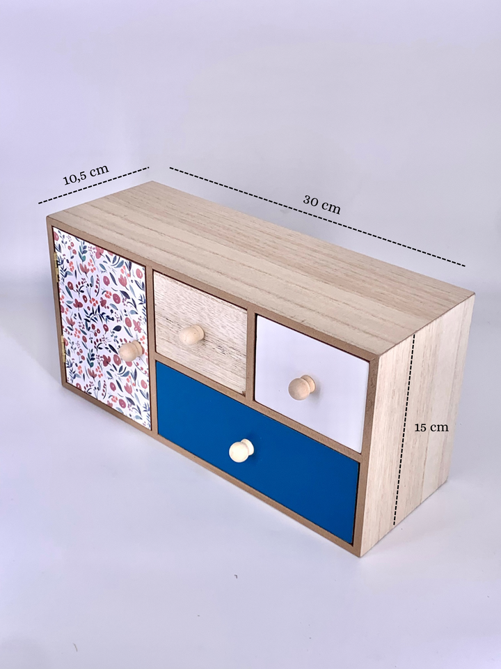Charmosa e funcional, esta mini cômoda em madeira é perfeita para organizar pequenos objetos com muito bom gosto. Ideal para bijuterias, acessórios, itens de papelaria ou lembranças especiais, ela une praticidade ao visual rústico e acolhedor da madeira natural. Um item versátil que se adapta facilmente a qualquer ambiente.
