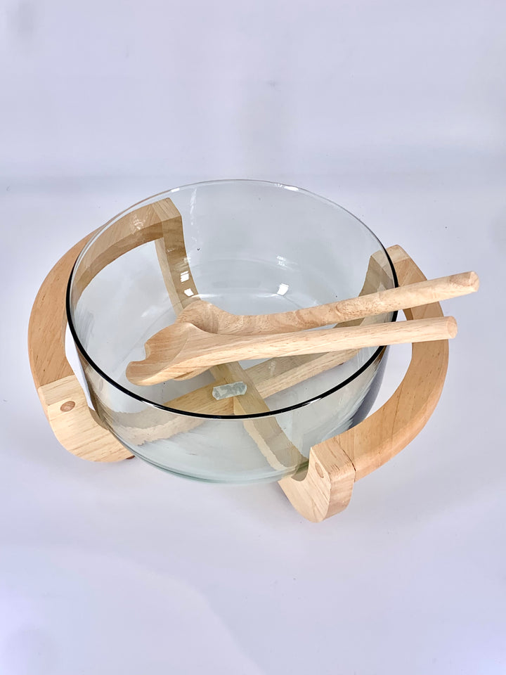 Saladeira com Suporte e Colheres em Bambu - Praticidade e Sustentabilidade na Sua Mesa